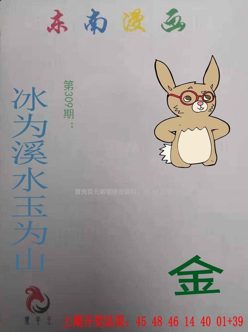 | 308期:五肖 | 鼠牛马兔猴 | 開:兔39 |